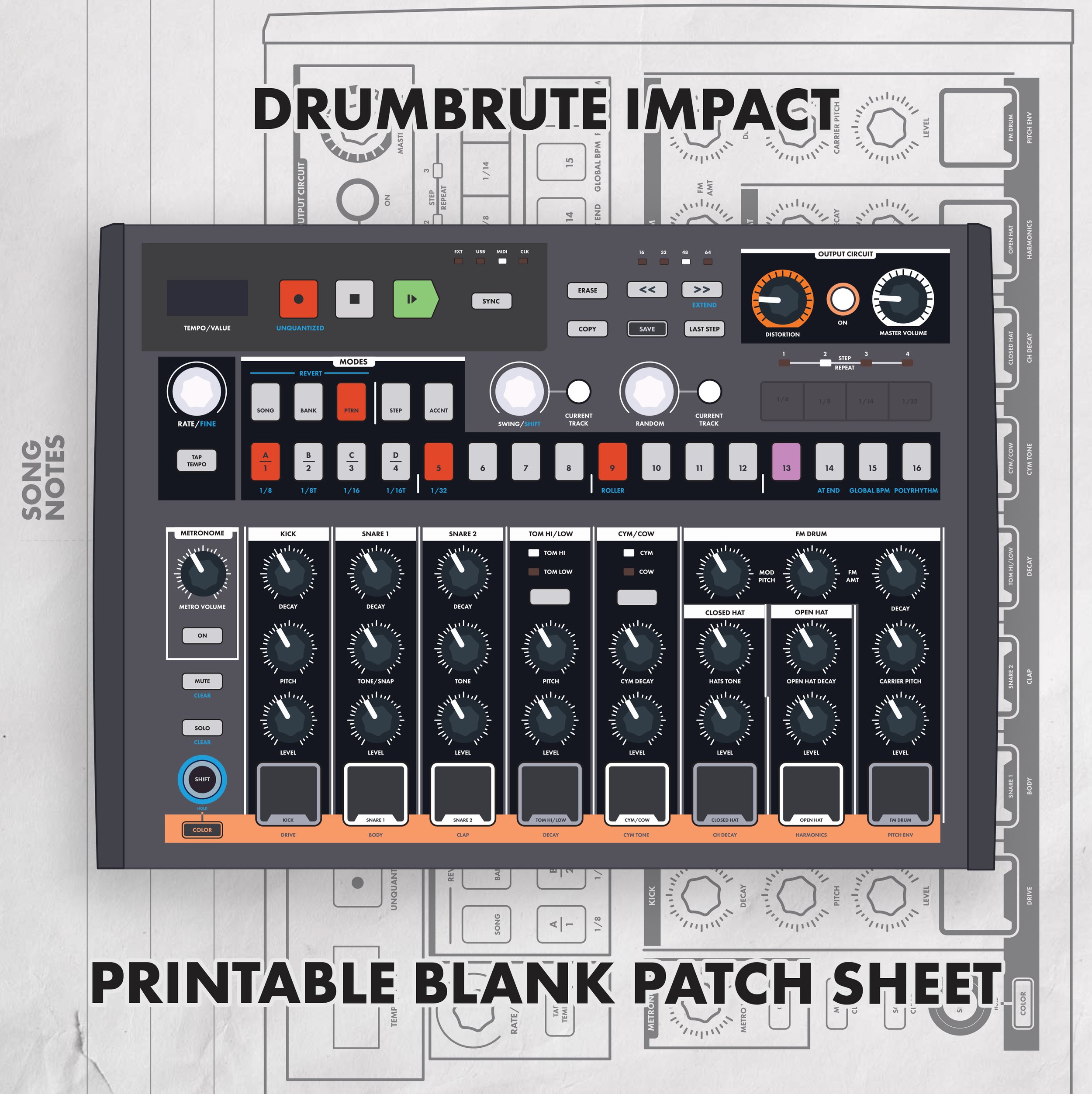 Blank Patch Sheets for the Arturia DrumBrute Impact