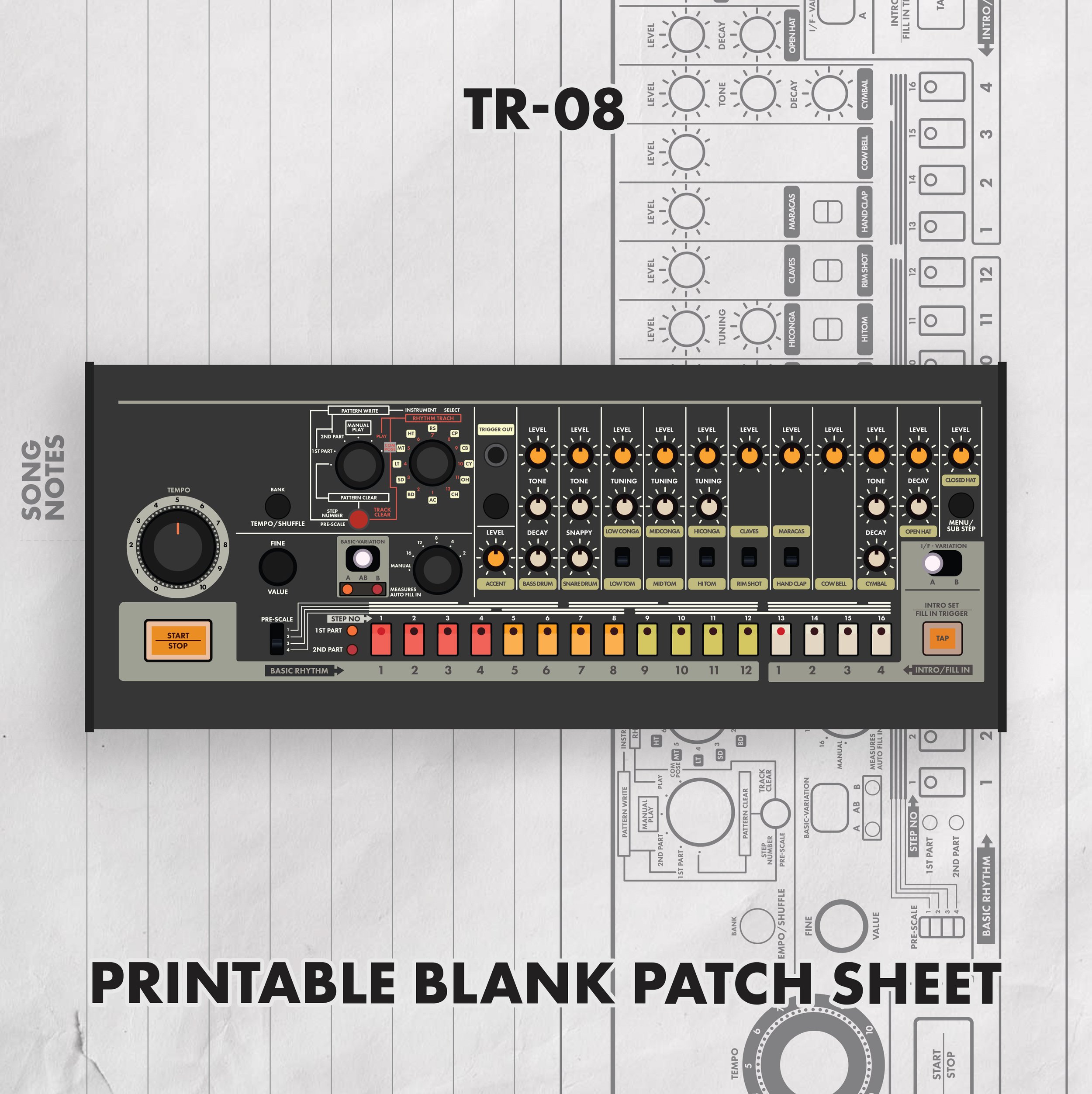 Blank Patch Sheets for the Roland TR-08