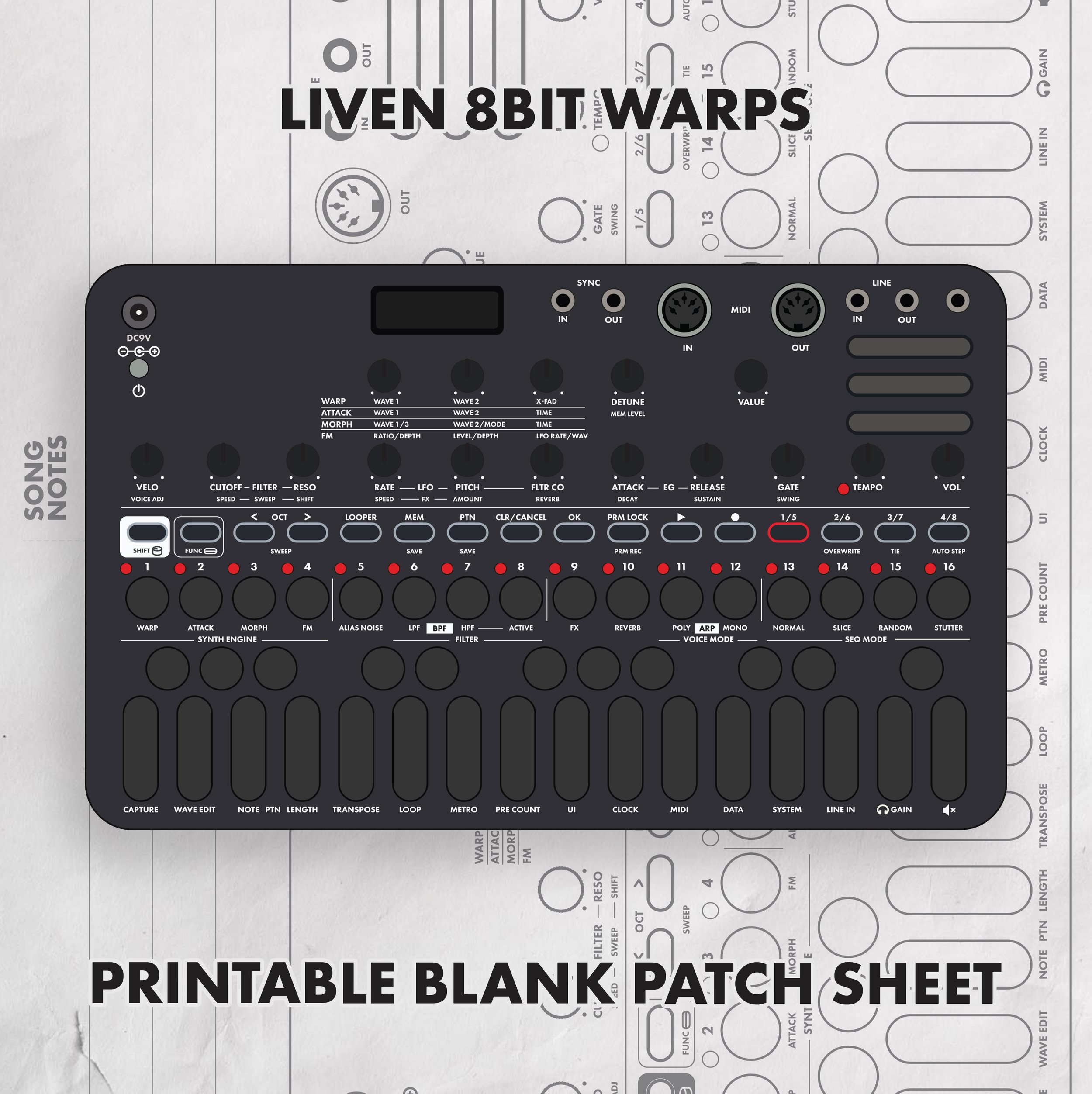 Blank Patch Sheets for the Sonicware Liven 8bit Warps